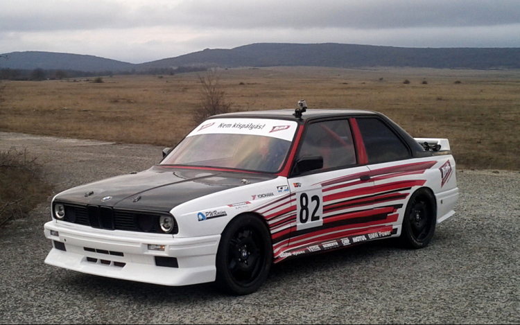 - Az autót még 2007-ben vásároltam Münchenben, egy széria BMW E30 320i Coupe-ként. Az első 3 évet ezzel a 20-as motorral versenyeztem, motorikusan komolyabb fejlesztés nem volt benne, évről-évre mindig csökkentettem a súlyát, míg végül a főbb karosszéria elemek üvegszálból készültek el. Ez egy nagyon hosszú építkezés volt a mostani állapotáig. A mostani konfigurációtól már nem hiszem hogy el fogunk térni, mivel már a 3. futómű, 3. motor és 3. váltó lett tesztelve az autón. Egy 2,8 literes szívó M20-as hajtja a vasat, KW állítható futóművel, a súlya 960 kg körül van, minden kilakoltatva (minden ami kell és semmi ami nem).