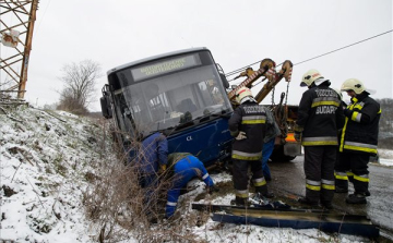 Ütközés következtében az oldalára borult egy autóbusz kedden reggel a Nógrád megyei Rákóczibánya külterületén, a buszban rekedt három gyerek, akik könnyebb sérüléseket szenvedtek.